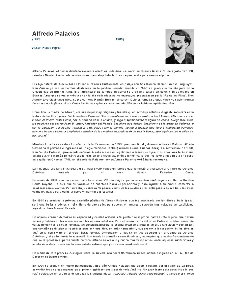 Alfredo Palacios Frases . Palacios Nació En Buenos Aires El 10 De Agosto De 1878.